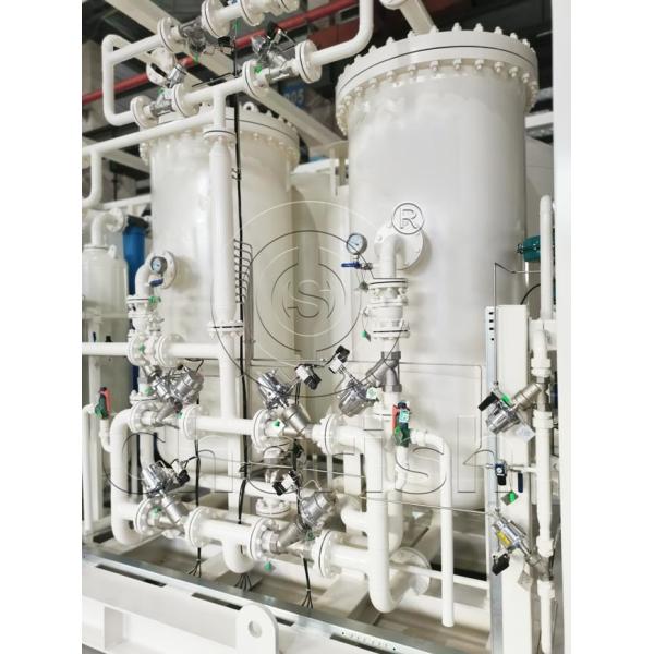The compressed air from the air compressor first enters the cold dryer to remove water, and then enters the PSA oxygen plant composed of two adsorption towers. The special zeolite molecular sieve adsorbent filled in the tower is used to selectively adsorb N2, CO2 and other impurity gas components, while O2 as product gas will be discharged from the tower top with a purity of 93% ± 3.